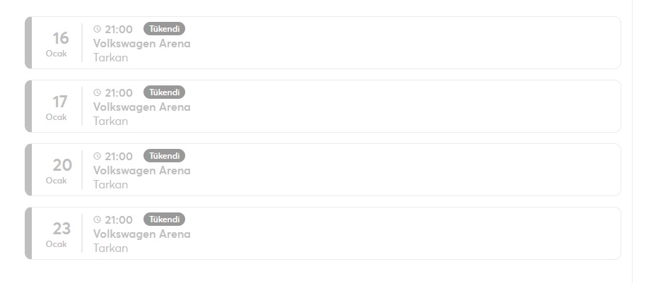 Tarkan’ın Volkswagen Arena’da vereceği Konser etkinlikleri için ayrılan biletlerin tamamının kısa sürede tükenmesinden sonra biletlerin kara borsada satışa sunulduğu görüldü.