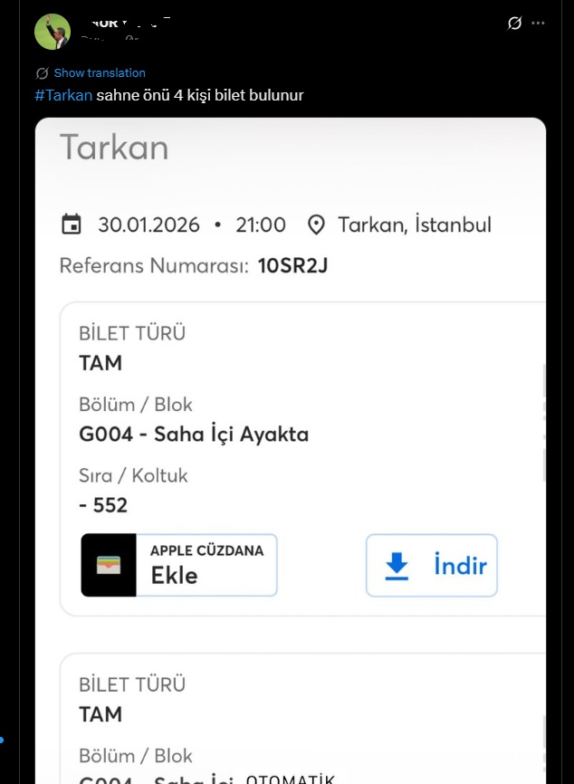 Tarkan konserleri için ayrılan biletleri zamanında satın alan kara borsa bilet avcıları sahip oldukları biletleri sosyal medyada kara borsada satışa sunmaya başladı.